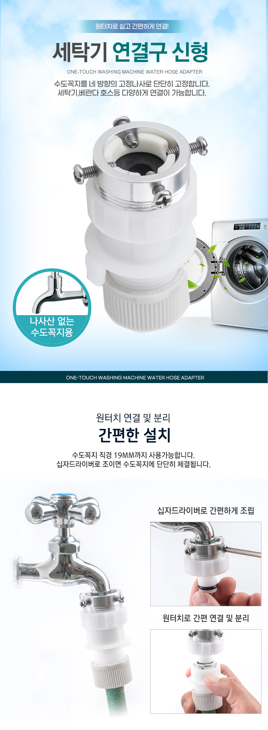 • Compatibility: Washing Machine & Faucet