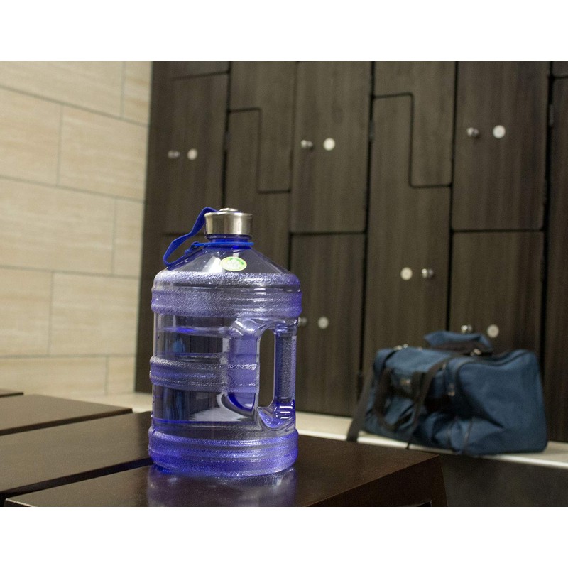 New Wave Enviro Iconic 1 Gallon Round BPA Free Water Bottle with Stainless Steel Cap and Integrated Handle, Ideal for Gym and Outdoor Life, Blue