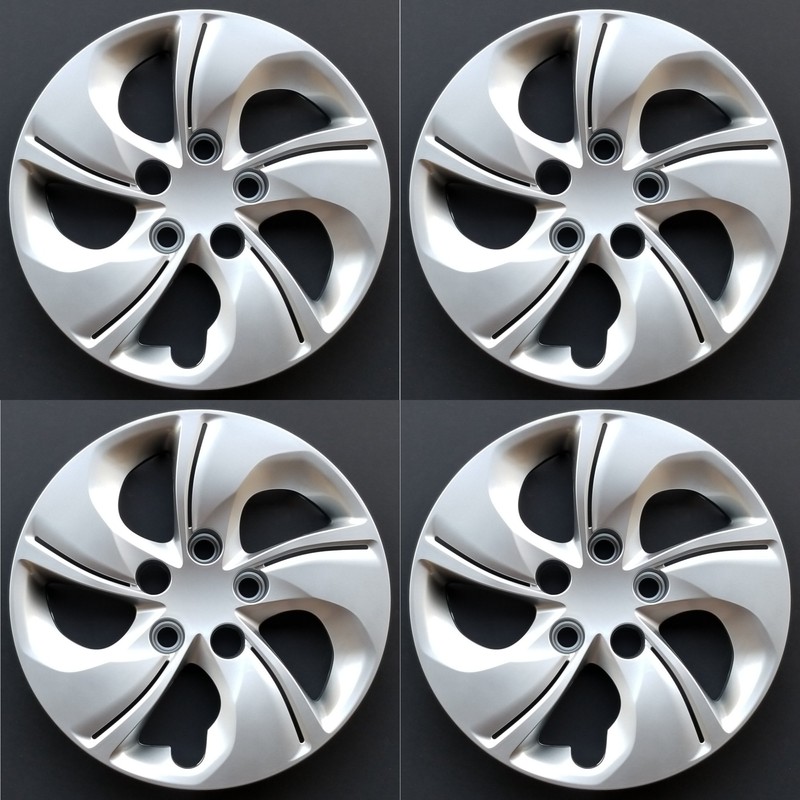 New Wheel Covers Hubcaps Fits 2013-2015 Honda Civic, 15 Inch; 5 Twisted Spoke; Silver Color; Plastic; Set of 4; Bolt On