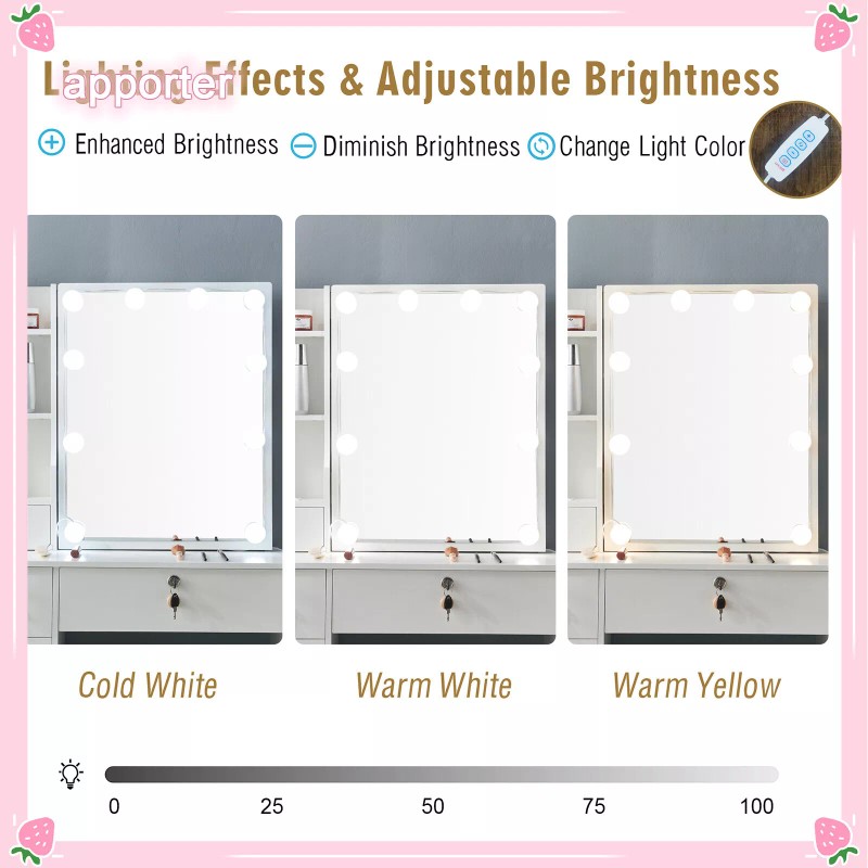 NEW White Vanity Makeup Table Dressing Desk Set w/Stool 10 LED Lighted Mirror US