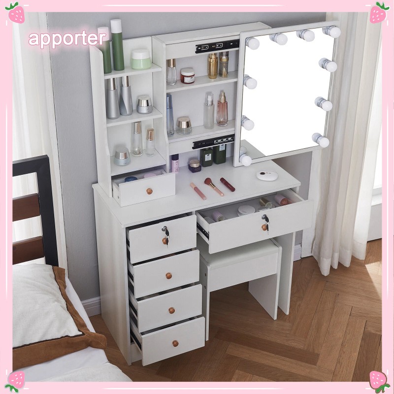 Two middle drawer with lock and four small drawers is perfect for storing jewellery ,treasures and perfumes, meeting all your makeup needs.