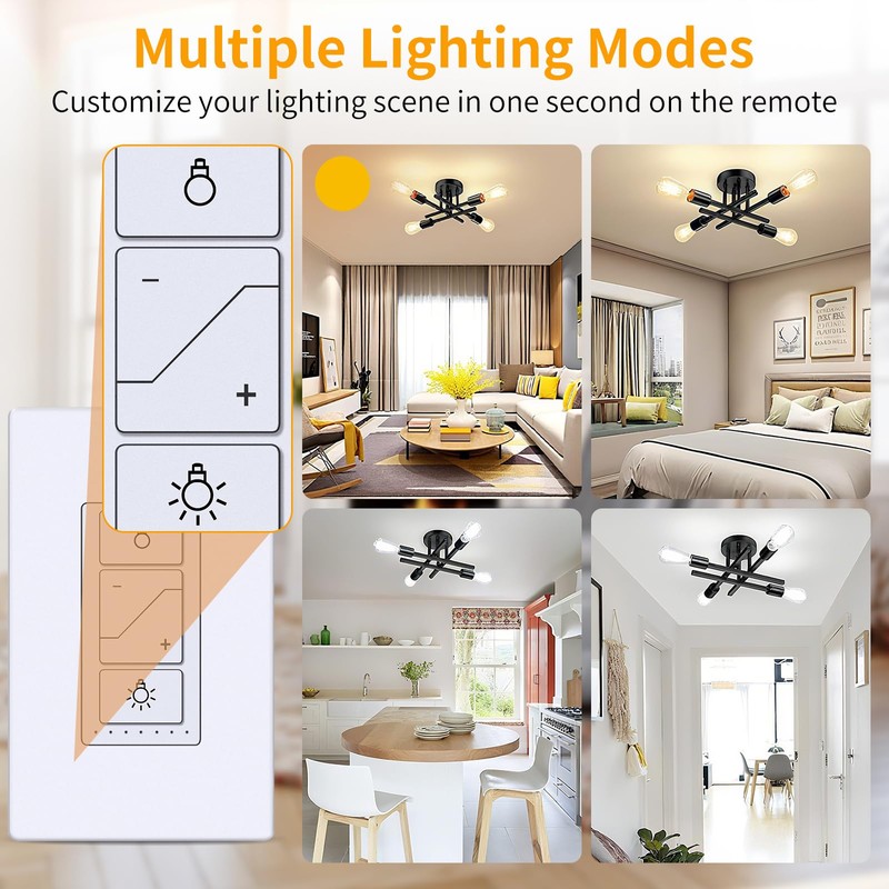 • 【WIRELESS REMOTE CONTROL】Remote works without Wi-Fi and is not limited by router distance. The signals can transmit through walls and obstacles without line of sight. Detachable remote provides more flexibility for mounting location. Allowing you to say goodbye to pull chains and operate your lights effortlessly with just a button press. PACKAGE INCLUEDED: 2 remotes with wall plate, 2 receivers