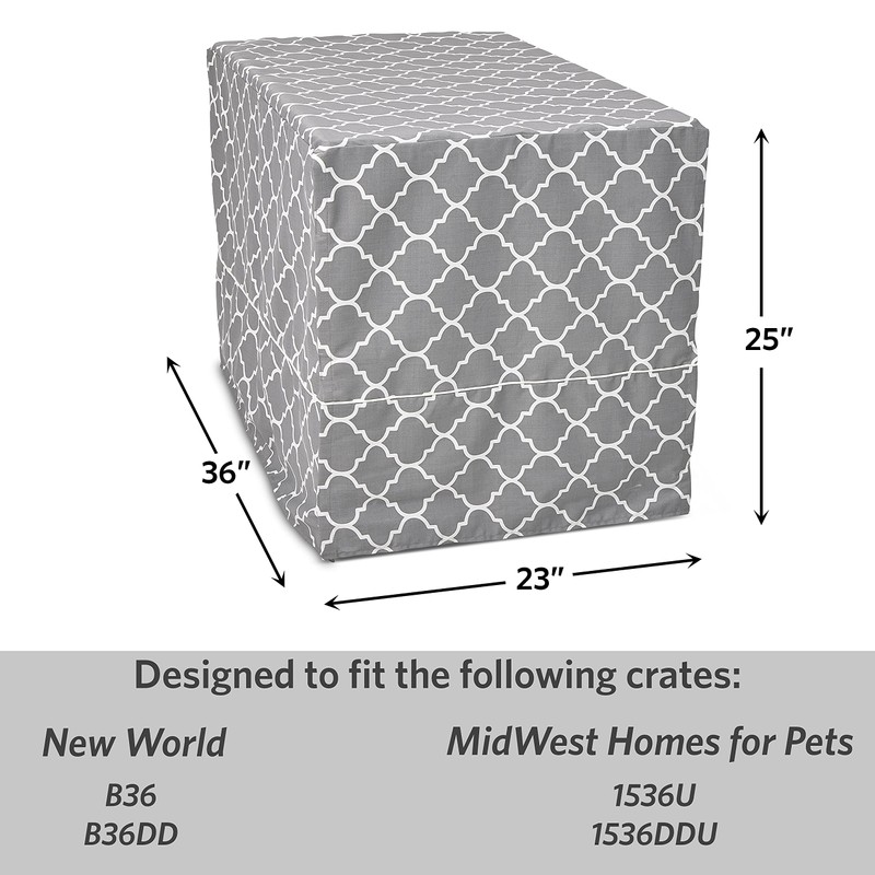 - New World Teflon protected dog crate cover provides the privacy, security & comfort that dog's instinctually need & desire as recommended by Veterinarians, Breeders & Trainers. Crate cover designed for New World dog crates & MidWest Homes for Pets iCrates (models B36, B36DD, 1536U, 1536DDU), will also fit most 1 & 2 door folding metal dog crates 36" long