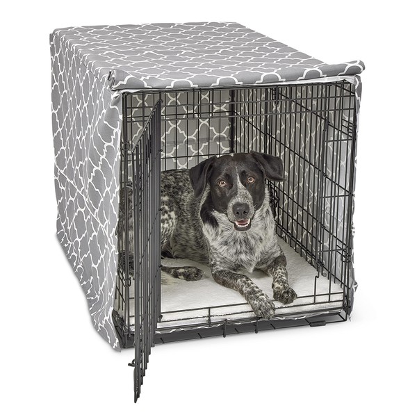 New World Pet Products Dog Crate Cover Featuring Teflon Fabric Protector, Dog Crate Cover Fits New World & Midwest 36-Inch Dog Crates, Light Gray Designer Pattern