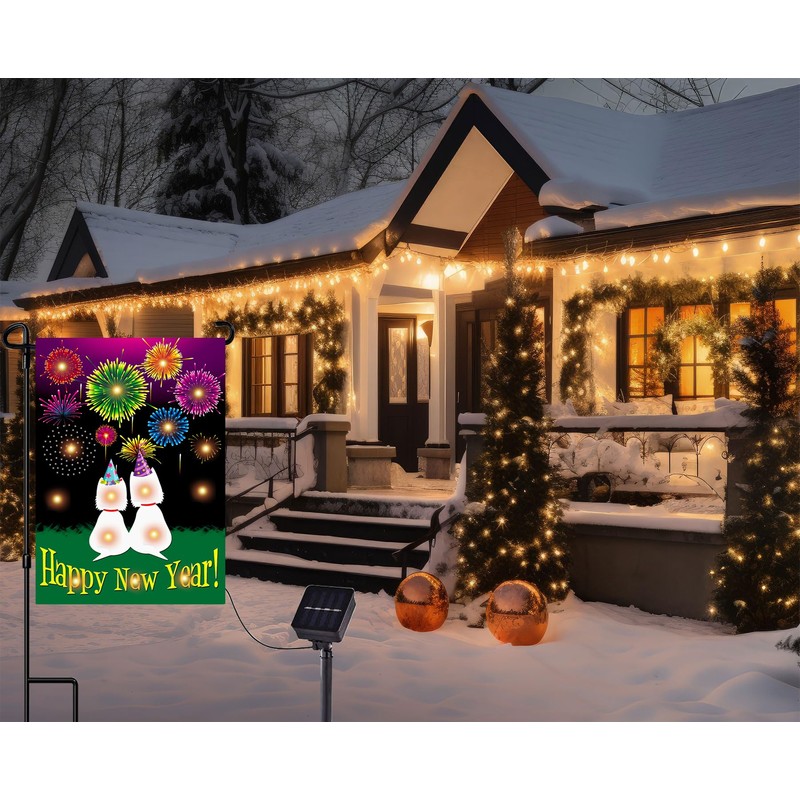 New Year Garden Flags,8 Warm Lighting Modes LED New Year Flags New Year House Flags 12.5 x 18 Inch Outdoor New Year Garden Flags for New Year Garden and Home Decoration