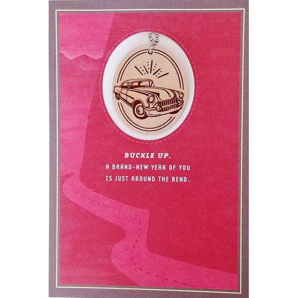 New Year of You Just Around The Bend Vintage Car Themed Premium Greeting Card with Bonus Keychain - Hope It's One Awesome Ride