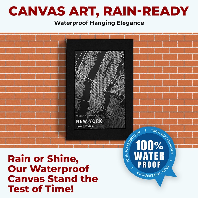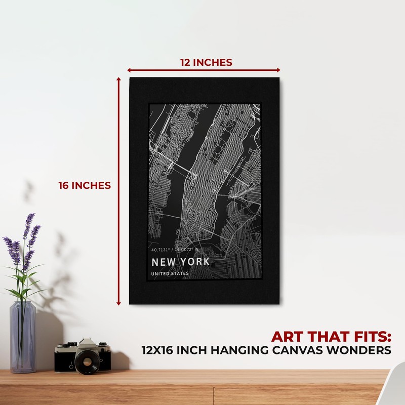 New York Map Canvas Wall Art by Mavis Print- 12x16 inches Map Wall Decor | UV & Water Resistant HD Printed & Wooden framed wall art | Modern Wall Decor for Gift | Made in USA