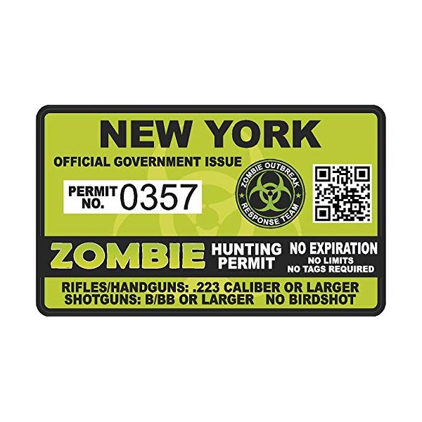 - New York NY Zombie Hunting Permit - Hunter response biohazard team Unit 4" Outbreak Sticker