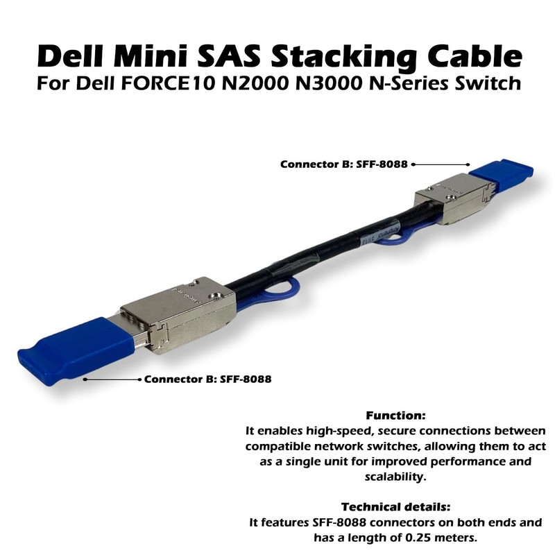 - YP20D DELL 0.5M, SFF-8088 to SFF-8088, Mini SAS to Mini SAS 0YP20D NEW!