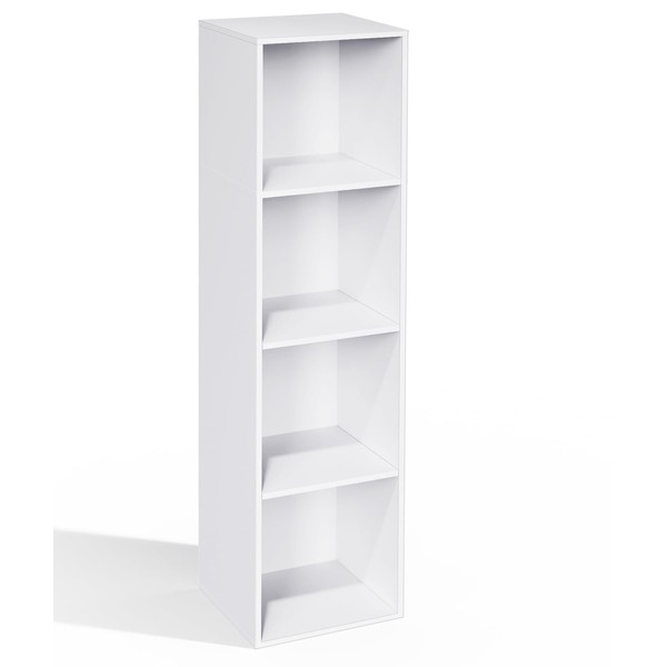 NewBeth 4 Cube Storage Organizer, 4 Tier Cube Low Bookcase Freestanding Storage Display Organizer, Four-Cubes Open Shelf Bookshelf for Home Office (White, 4-Cube)