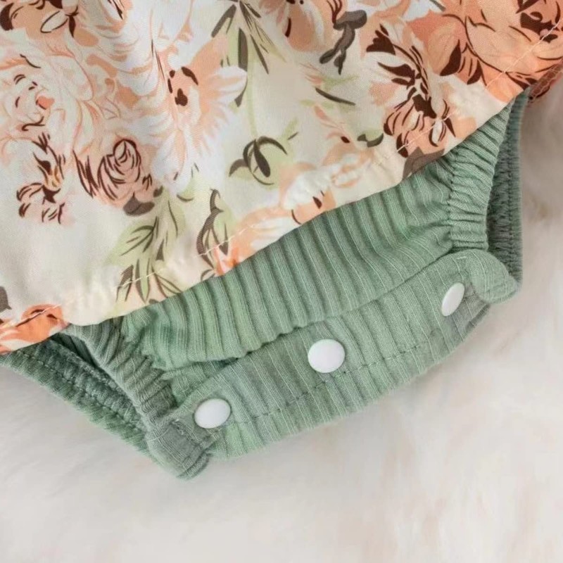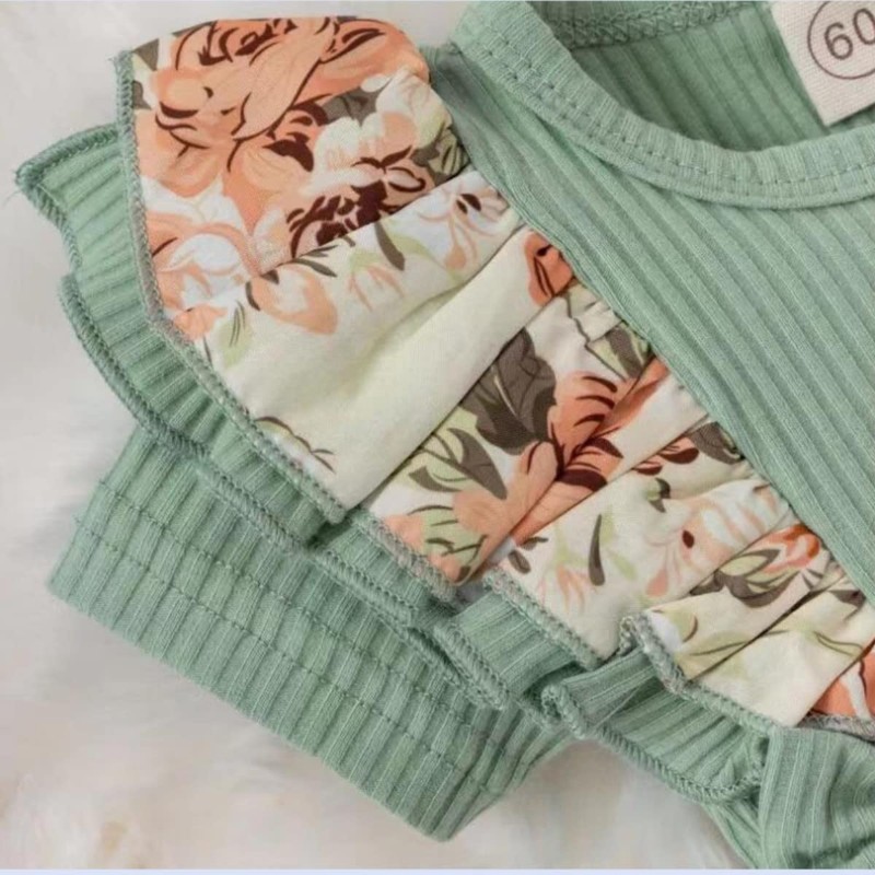 Newborn Baby Girl Romper Dresses Clothes Set Short Sleeve Floral Ruffle Bow Overall Bodysuit Onesie Floral Skirt Hem Outfit (Short Sleeve Green, 0-3 Months)