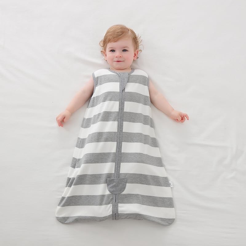 Newborn New Blanket Soft Cotton Baby Sleeping Bag Zipper Breathable Knitted Design Double-Layer Vest Sleeping Bag Knitted 100% Pure Cotton Anti Kick (0-3 Months, Gray Stripe Pattern)