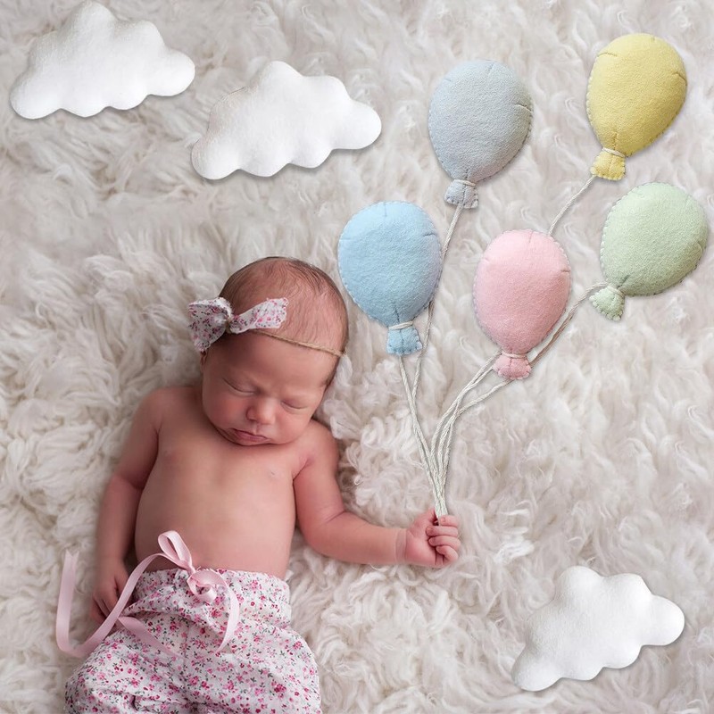 - ☆☆Baby Photography Props: This baby photography props can help enrich the baby's photography scene. And these felt balloons and cloud props for baby photography are mini cute and full of childlike fun. Can create unique baby photography styles and baby styling.