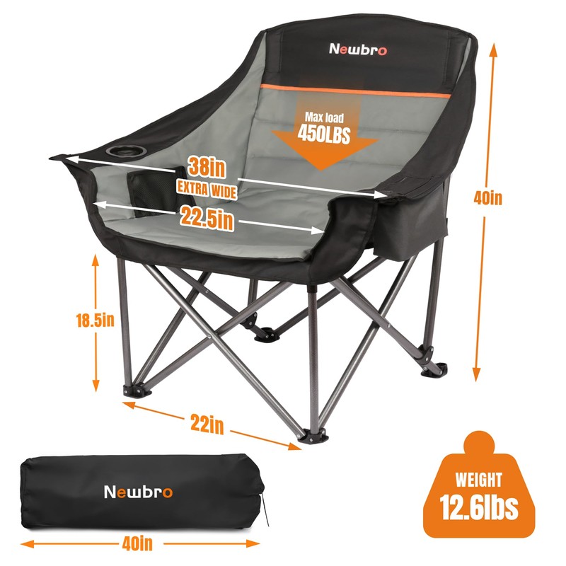 - 【Extra-Large Size with 450lbs Weight Capacity】 Designed for ultimate comfort, this oversized camping chair provides ample seating space and supports up to 450lbs