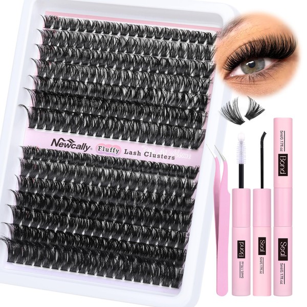 Newcally Fluffy Lash Clusters Kit Thick Eyelash Clusters DIY Lash Extension Kit 80D+100D Wispy Individual Lashes Kit D Curl 10-18MM Eyelash Extension with Lash Bond and Seal by Newcally