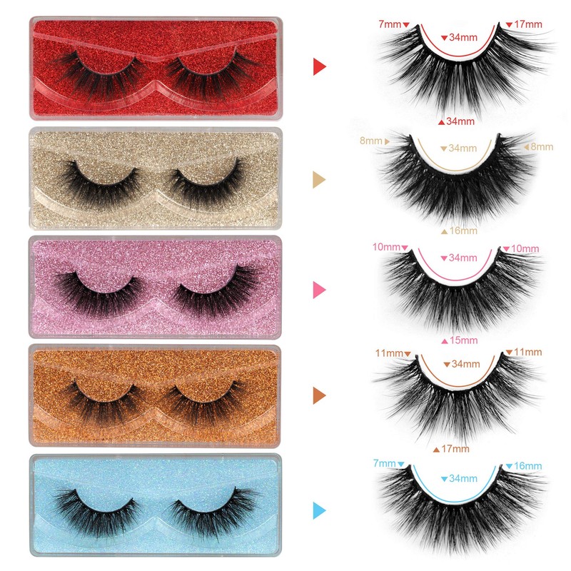 • 10 DIFFERENT STYLES LASHES: The false lash set contains 10 styles total 10 pairs delicate falsies, each with glittering box. These wispy, round/flare lashes are elegant and glamorous adding even length and volume.