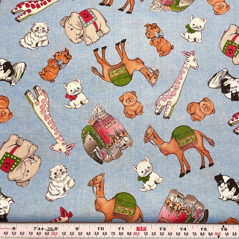 New Paper Dolls - Animals by Sibling Arts Studio for Newcastle Fabrics Blue Cotton Fabric by the HALF YARD 18" x 44". Multiple quantities purchased will be one continuous piece. Unwashed from a smoke free home.