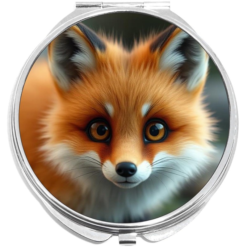 NewCharms Cute Baby Fox Face Compact with Mirrors - Perfect Pocket and Purse Size Folding Mirror for Applying Make Up Anywhere