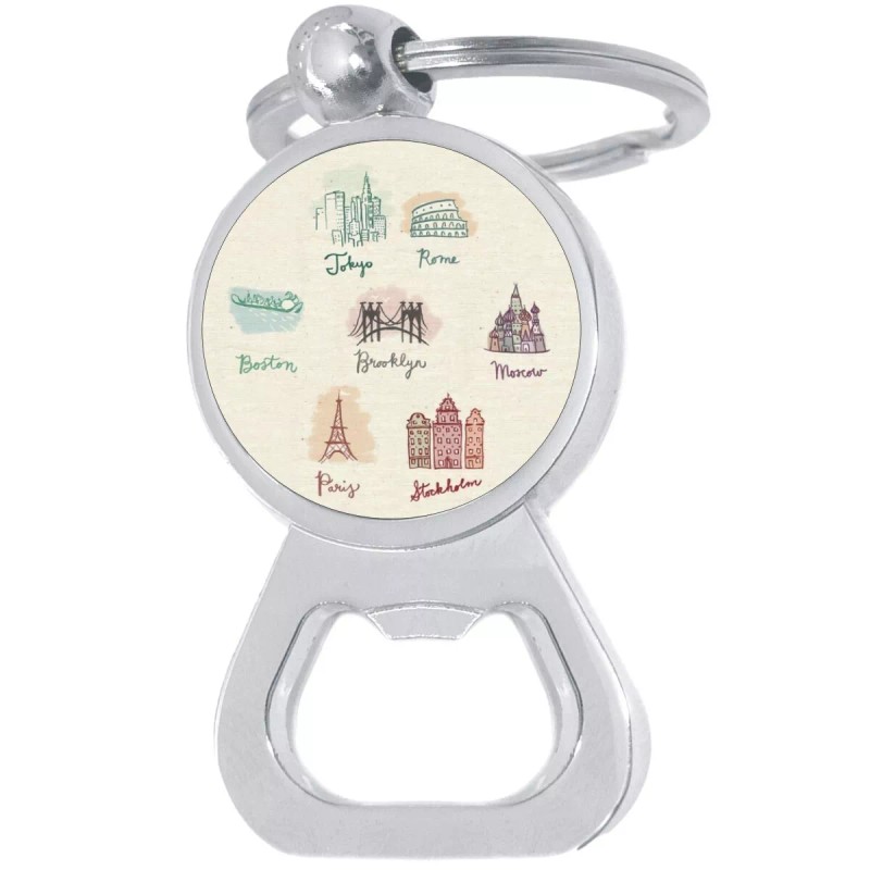 NewCharms Travel Cities Bottle Opener Keychain - Metal Beer Bar Tool Key Ring
