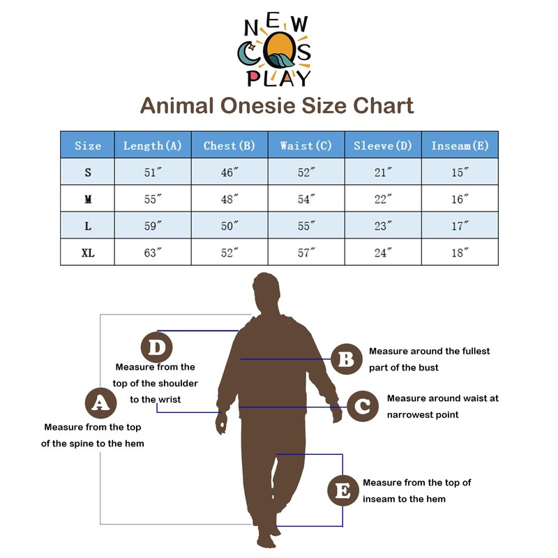 - Design: Unleash your inner child with our fun and cozy animal onesie costume! The loose fit design with zipper closure allows for great relaxation and comfort. The two pockets are perfect for holding small items or keeping your hands warm.