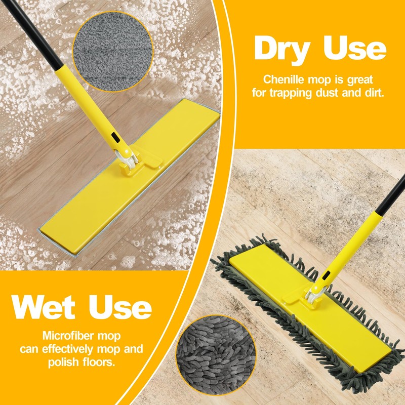 - 4 Mop Pads Included: Package comes with 2 pcs chenille pads and 2 pcs microfiber pads. The microfiber pads can be wet-used for floor mopping and window cleaning, while chenille pads can be dry-used for dusting wall and cabinet