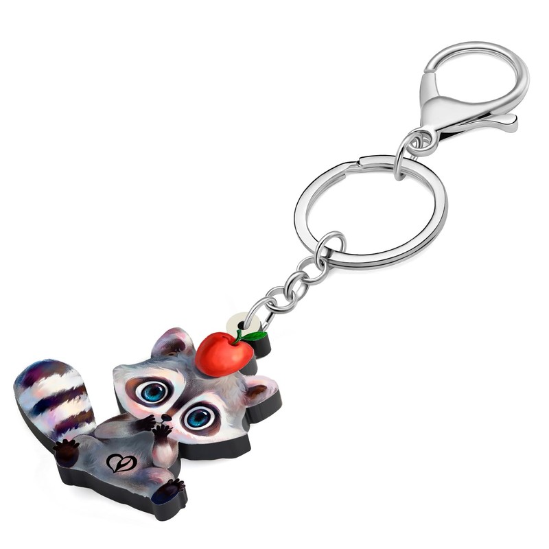 NEWEI Acrylic Northern Raccoon Keychains Rings Jungle Animal Jewelry Handbag Purse Car Charms Gift For Women Girls (Raccoon B)