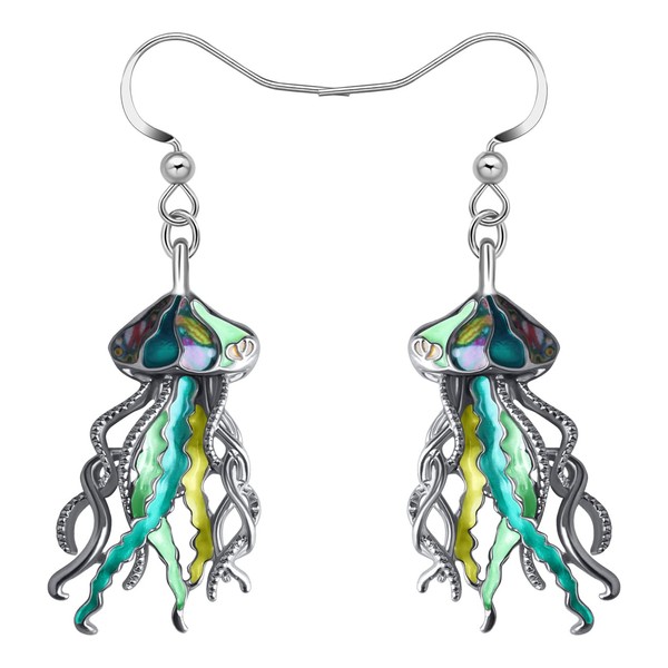 NEWEI Cute Enamel Whale Octopus Jellyfish Shark Earrings Dangle Jewelry for Women Sea Animals Gifts (Green Jellyfish)