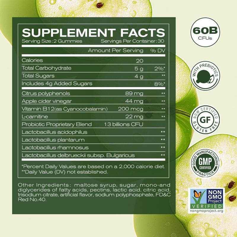 Treat yourself to these organic apple-flavored gummies that offer metabolism support, detox benefits, and a tasty way to increase your energy levels throughout the day. FDA Registration No. 10178978772.