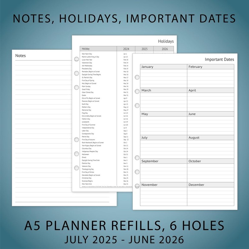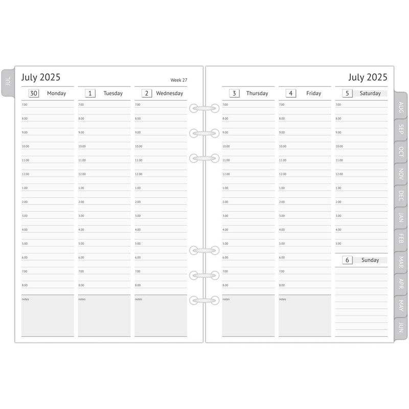 - A5 planner inserts from Jul 2025 to Jun 2026, compatible with Filofax A5 Organisers
