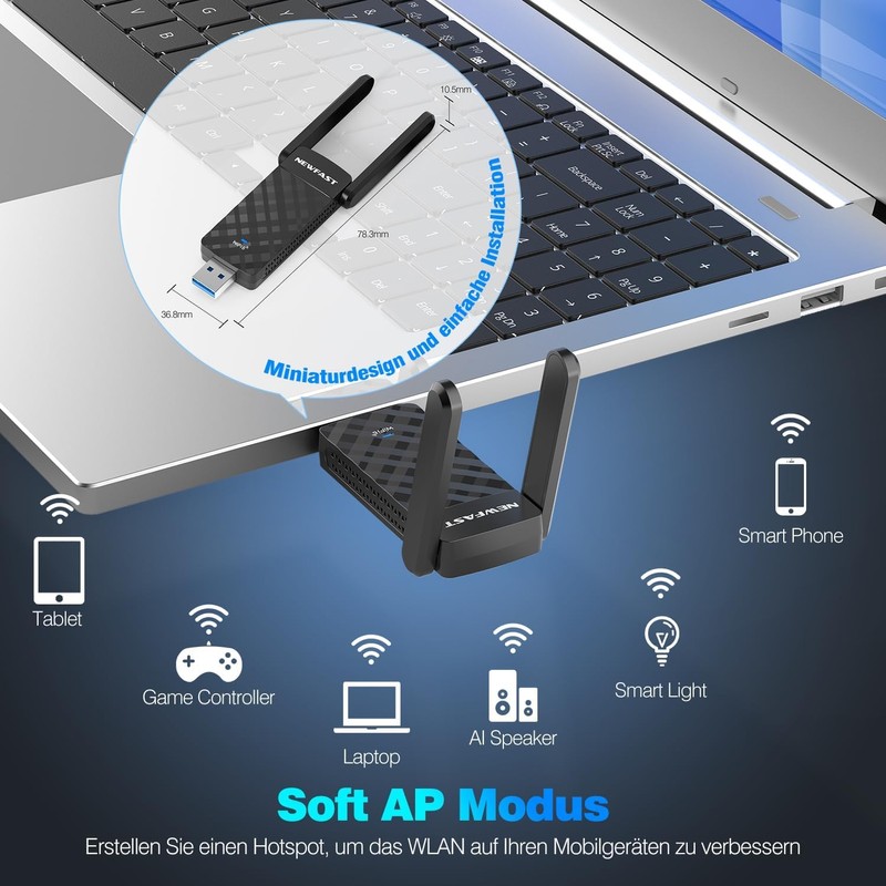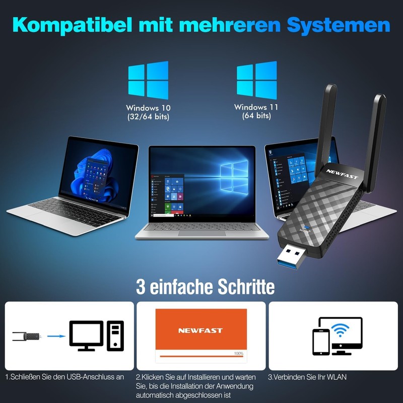 - Slim design with minimal setup: the slim and small design allows users to connect the wireless adapter and leave the device in place, the adjustable antenna and desktop design ensure high-quality reception. NEWFAST USB WiFi stick comes with pre-installed drivers that allow automatic device detection and easy configuration. Only compatible with Windows 11/10, not supported for Linux and Mac systems.