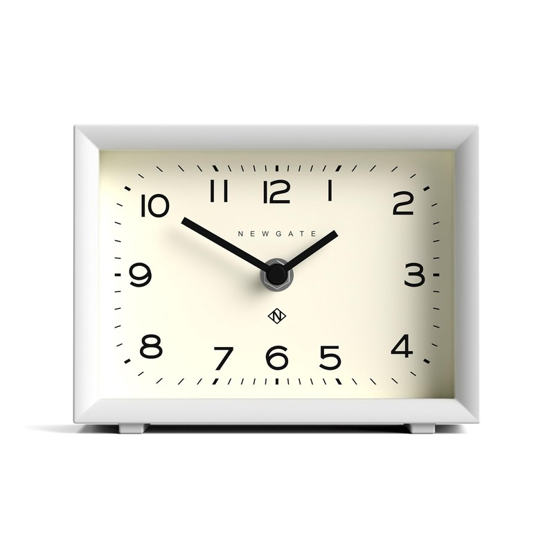 NEWGATE® 'Henry' mantel clock - contemporary rectangular design-led clock in white, ideal for desks, tables, shelfs, and bedside
