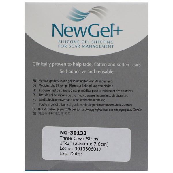NewGel+ Silicone Gel Sheet for Scars, 1 x 3 Inch, Clear, 3 Count