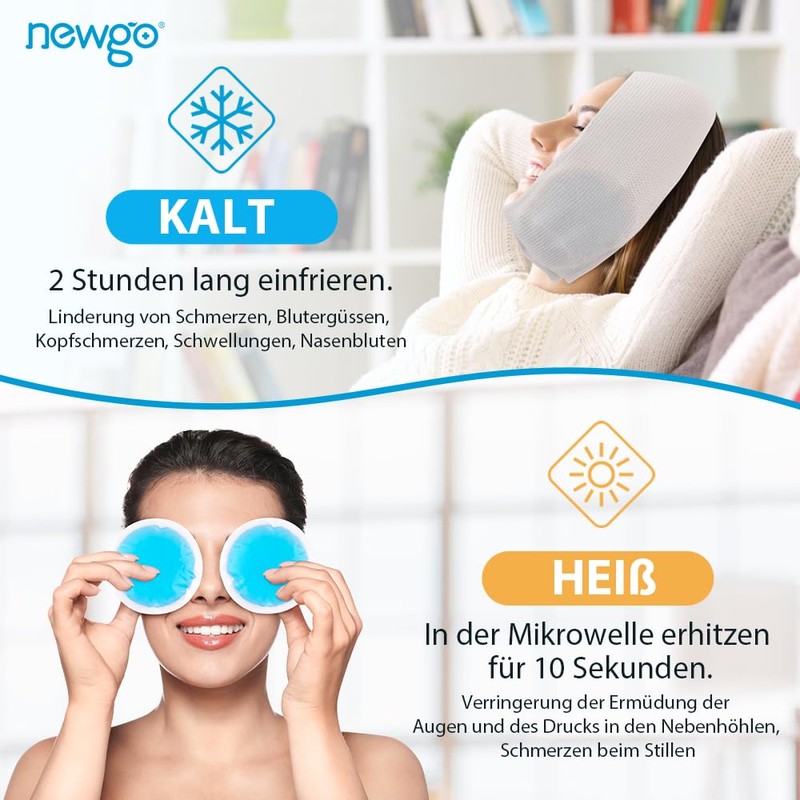 - ✅ Suitable for small areas – are you looking for a cooling pack in mini format? We recommend the NEWGO cooling pads, a 11cm x 11cm round ice pack that is suitable for warm and cold compresses for small areas such as eyes, head, nose, cheeks and more.