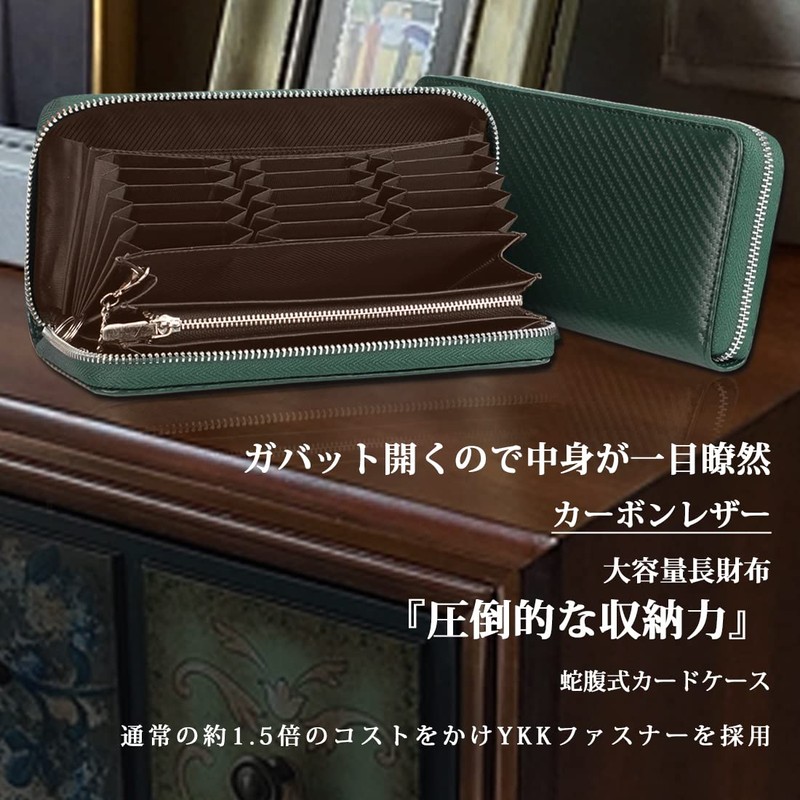 NEWHEY Men's Long Wallet, 23 Card Storage, YKK Carbon Leather, Coin Purse, Leather, Father's Day, 10,000 Times, Round Zipper, Card Storage, Waterproof, Large Capacity, Bill Holder, Gentleman's