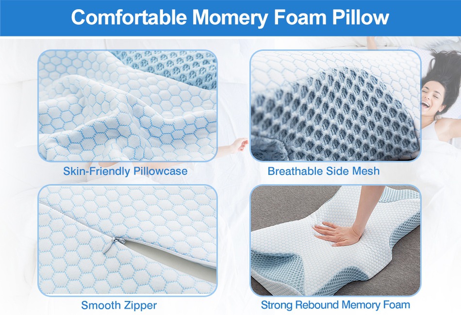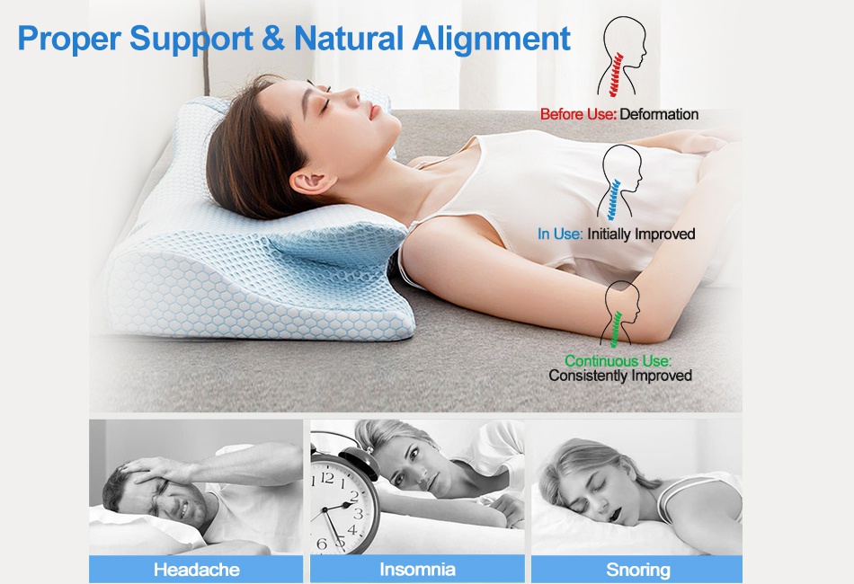 NewHome 2Pcs Memory Foam Pillow Neck Support Ergonomic Contour Pillow Bedroom Pillow