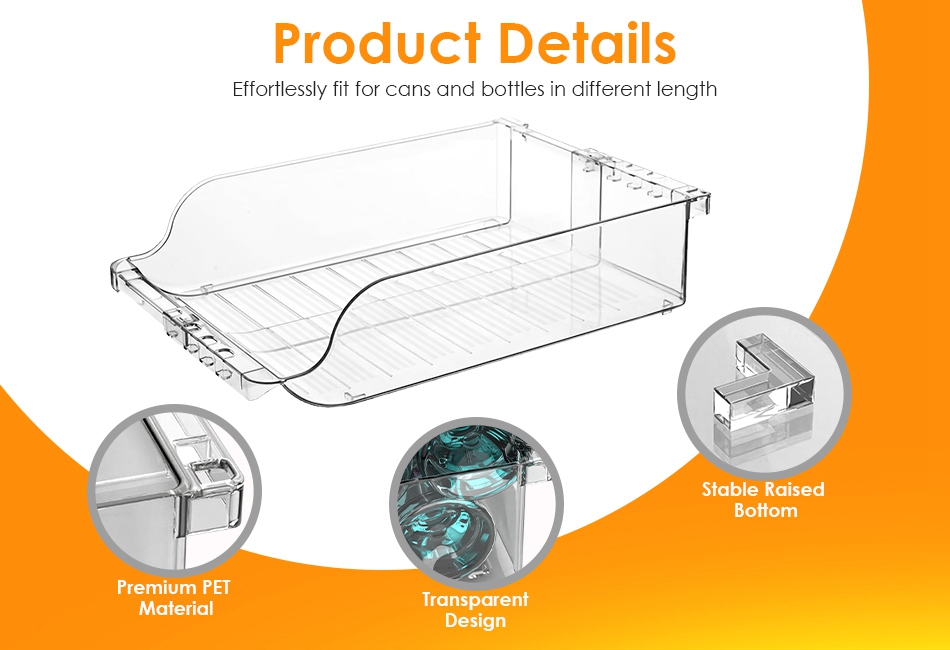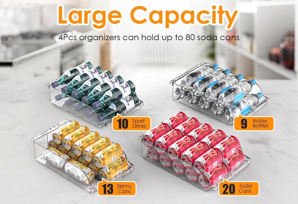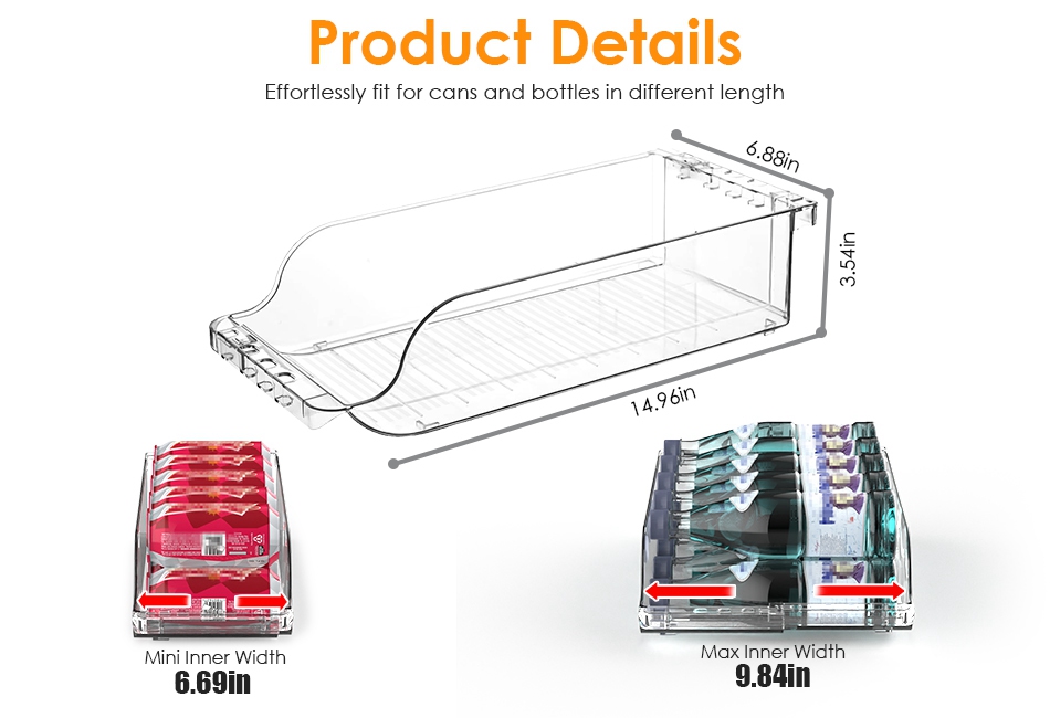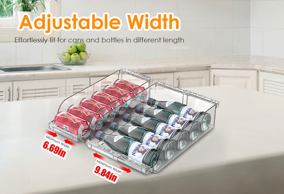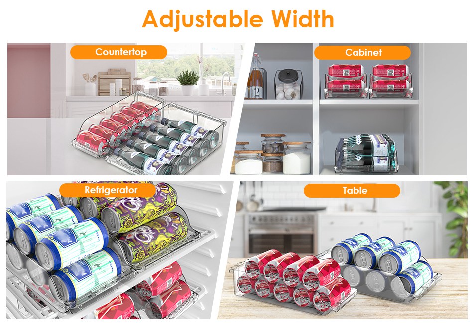 NewHome 4pcs Adjustable Soda Can Organizer for Refrigerator Expandable Bottle Can Holder