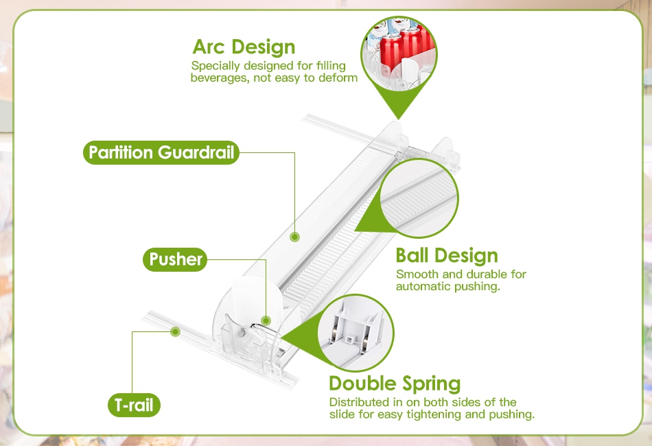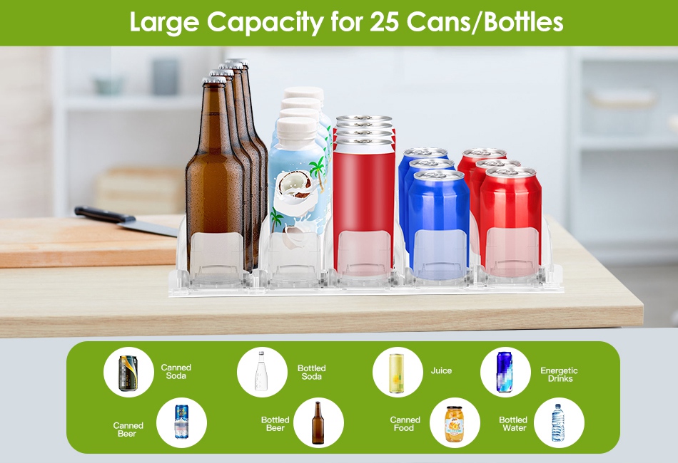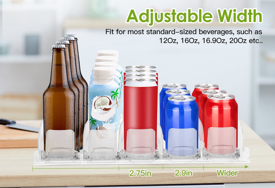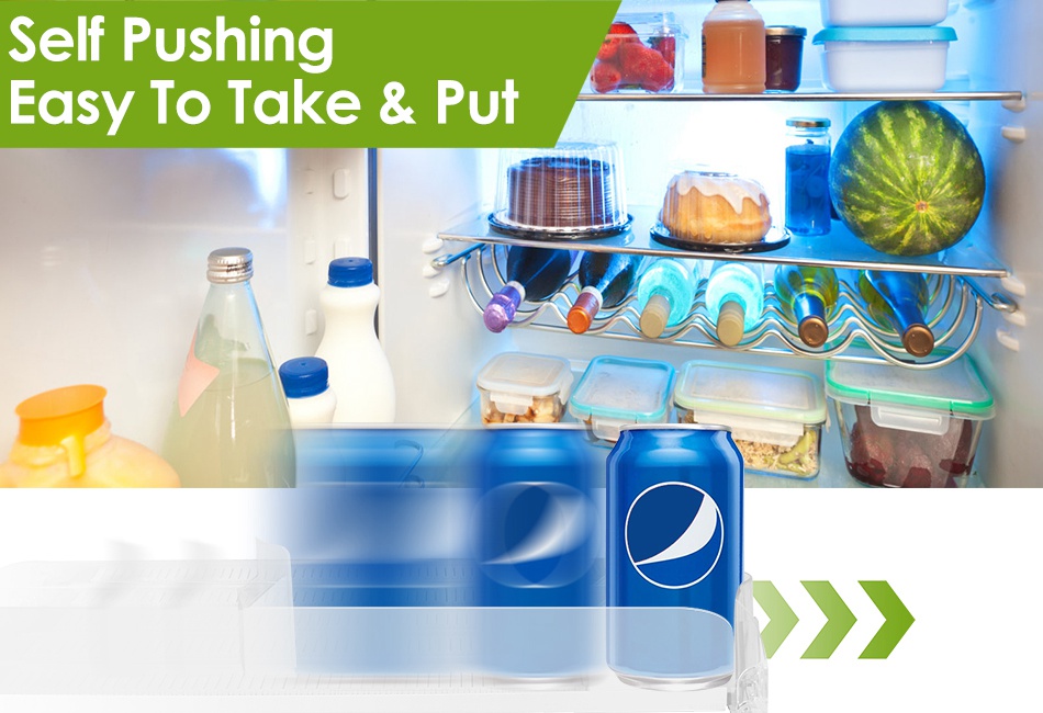 Newhome Drink Organizer Spring Loaded Beverage Dispenser Save Space Fridge Tray Holder