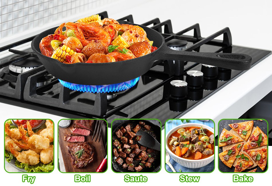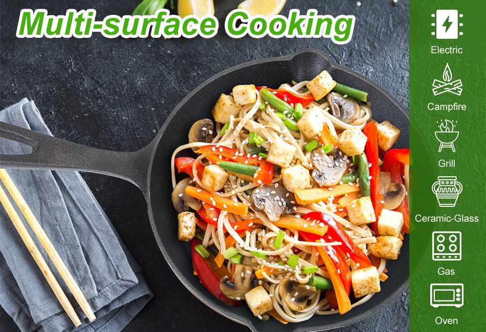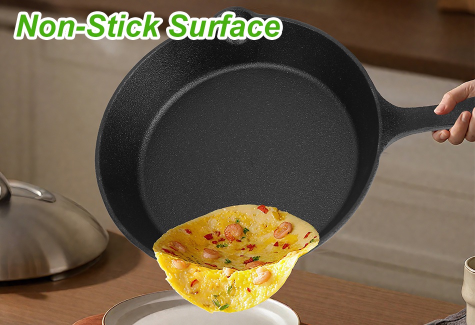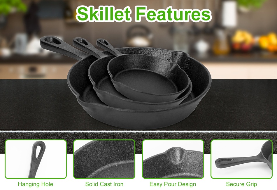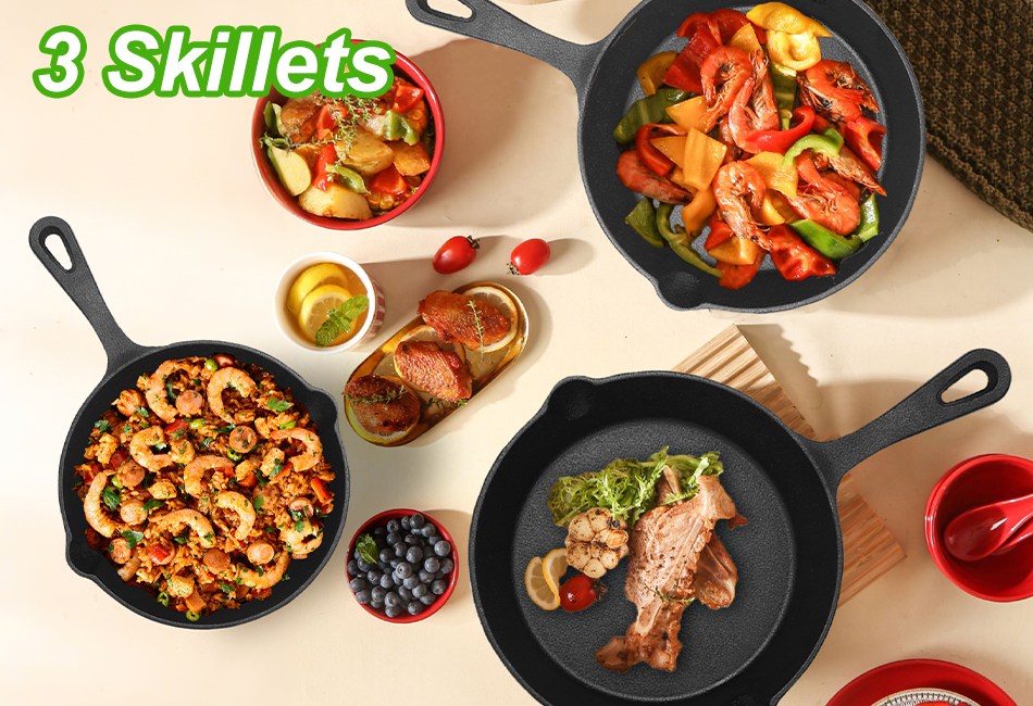 NewHome Frying Pan -Set of 3 Cast Iron Skillet w/ 10''/8''/6'' Sizes -Nonstick Cookware