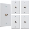 5-pack of single-gang wall plates with mounting hardware included. Each wall plate measures about 4.5 x 2.75 in. The plates are made from ABS plastic, which are corrosion resistant, hard to break and can withstand high temperatures. Standard F-type connector attached to a coaxial cable is used to connect devices such a modem, router, or CATV box for video and internet services to the wall jack plate.