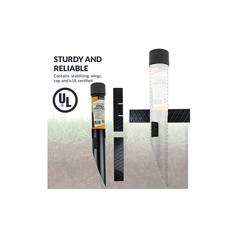 Newhouse Lighting MPOST17 2.5-Inch Outdoor Mounting Post with Cap and Stabilizing Wings for Landscape Flood Lights, Black, 17.63