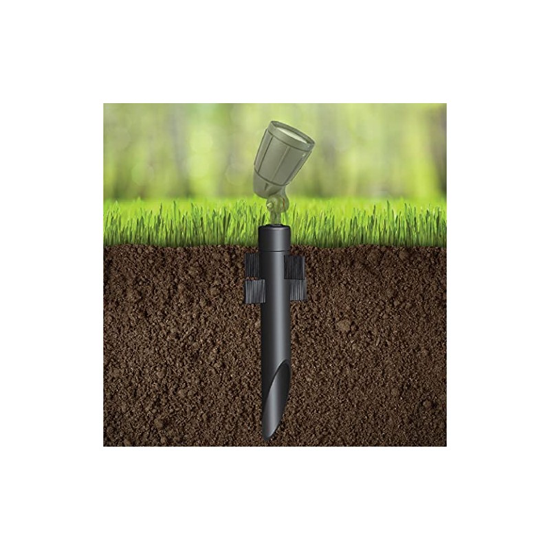 - Rugged mounting stake stabilizes ground level lighting fixtures such as flood lights and landscape lights