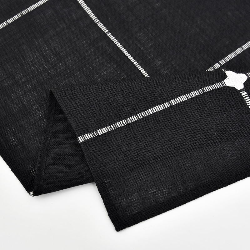 - Size: This elegant black tablecloth is 24 x 24 inch. There may be a slight error due to manual tailoring. Color difference due to the light and display screen. As the size guide shown, it's recommended for small square tables, end tables, beside tables and nightstand tables from 8 x 8 inch to 16 x 16 inch, with a droop length about 4 inch to 8 inch.