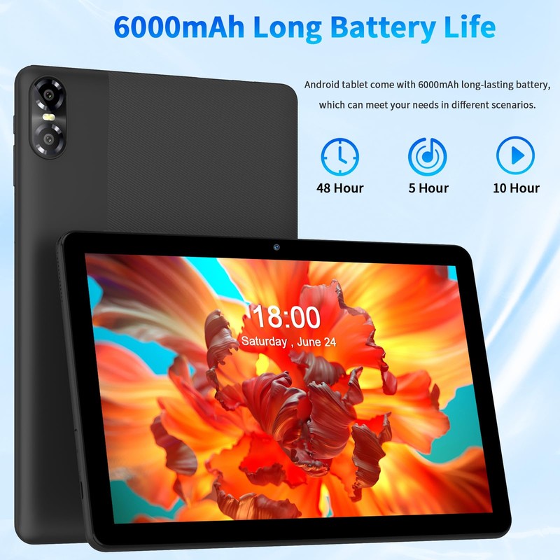 - 【10 Inch IPS HD Display + Long lasting Battery】 The android tablet 10 inch boasts a vibrant 10 inch IPS 1280*800 HD display, providing a stunning visual experience for all your entertainment needs. Whether you're watching movies or browsing the web, every detail will come to life. The tablet with case is equipped with a long-lasting battery(6000mAh) that can be used continuously for almost 6 hours