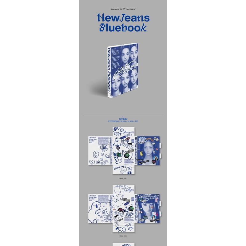 NewJeans New Jeans 1st EP Album Bluebook Version Random Cover CD+1p Mini Poster On Pack+68p Log Book+76p Pin-up Book+7ea Phoning Manual Book+1p ID Card+3ea Sticker Pack+5p Photocard+Tracking Sealed