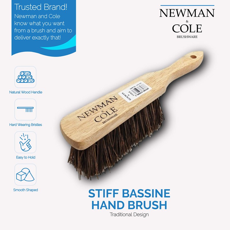 • QUALITY HAND HELD CLEANING BRUSH - The Newman and Cole wooden hand brush uses stiff synthetic bristles to easily ,and efficiently remove unwanted particles from any surface. As an everyday hand brush, it is very flexible and can be used as a floor brush, workshop brush, or carpet brush