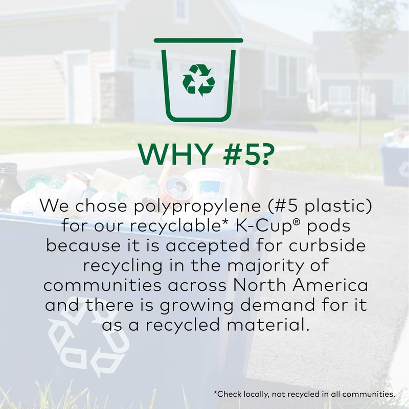- INTRODUCING RECYCLABLE* K-CUP PODS: Simple. Delicious. And now Recyclable. Enjoy the same great-tasting coffee you know and love, and when you’re done just peel, empty and recycle. *Check locally, not recycled in all communities. Packaging may vary.