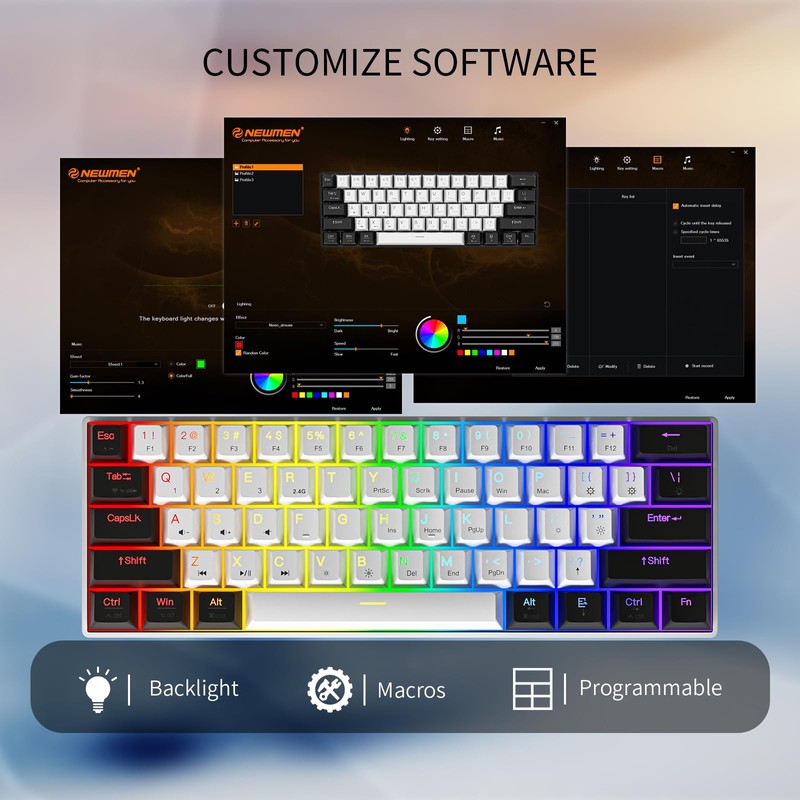 • [Macro Recording & Compatibility] This pc gaming keyboard can connect to your computer, laptop, tablet, smartphone. You can record macros NEWMEN GM610 mechanical keyboard, assign macros easily through the software. And the 60% percent keyboard is compatible with both Windows, Mac and Android systems.