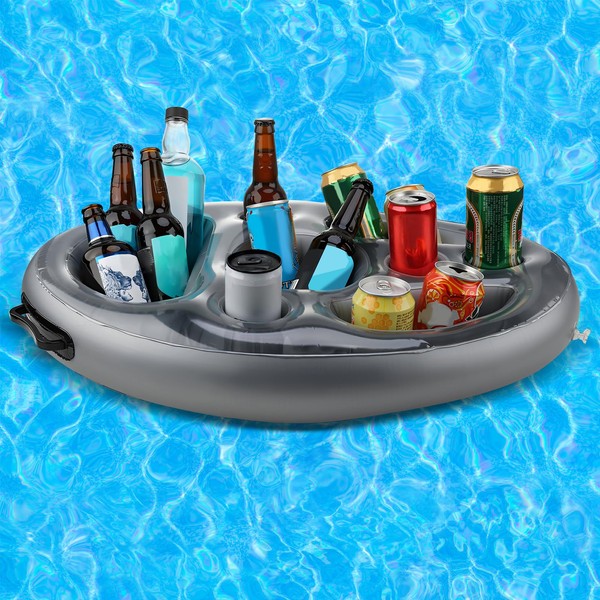 Newofview Inflatable Float, 2-in-1 Inflatable Drink Holder and Snack Holder, 8 Holes Large Capacity Floating Coasters, Floating Tray, Inflatable Pool Bar for Summer Party