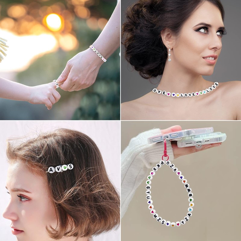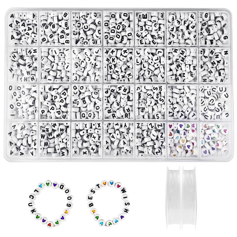 - Package includes: bead set contains 26 letters and colourful heart-shaped patterns, 50 per letter, a total of 1300 alphabet beads and 100 pieces colourful heart beads, meet your different collocation requirements. 2 rolls diameter is 0.8 mm, length 5 m elastic cords. 1 storage box.