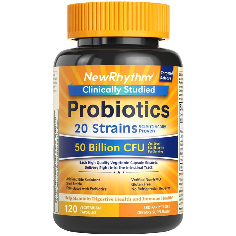 - ★50 Billion 20 Strains Targeted Release Formula★ NewRhythm 50 Billion Probiotics Capsules is Scientifically Backed and Clinically Proven, Formulated by Doctor with 50 Billion Living Organisms Per Serving, Featuring Targeted Release Technology to Help Probiotics Survive Stomach Acids and Reach Your Intestinal Track. Organic Prebiotics Fiber is also Included In the Formula.